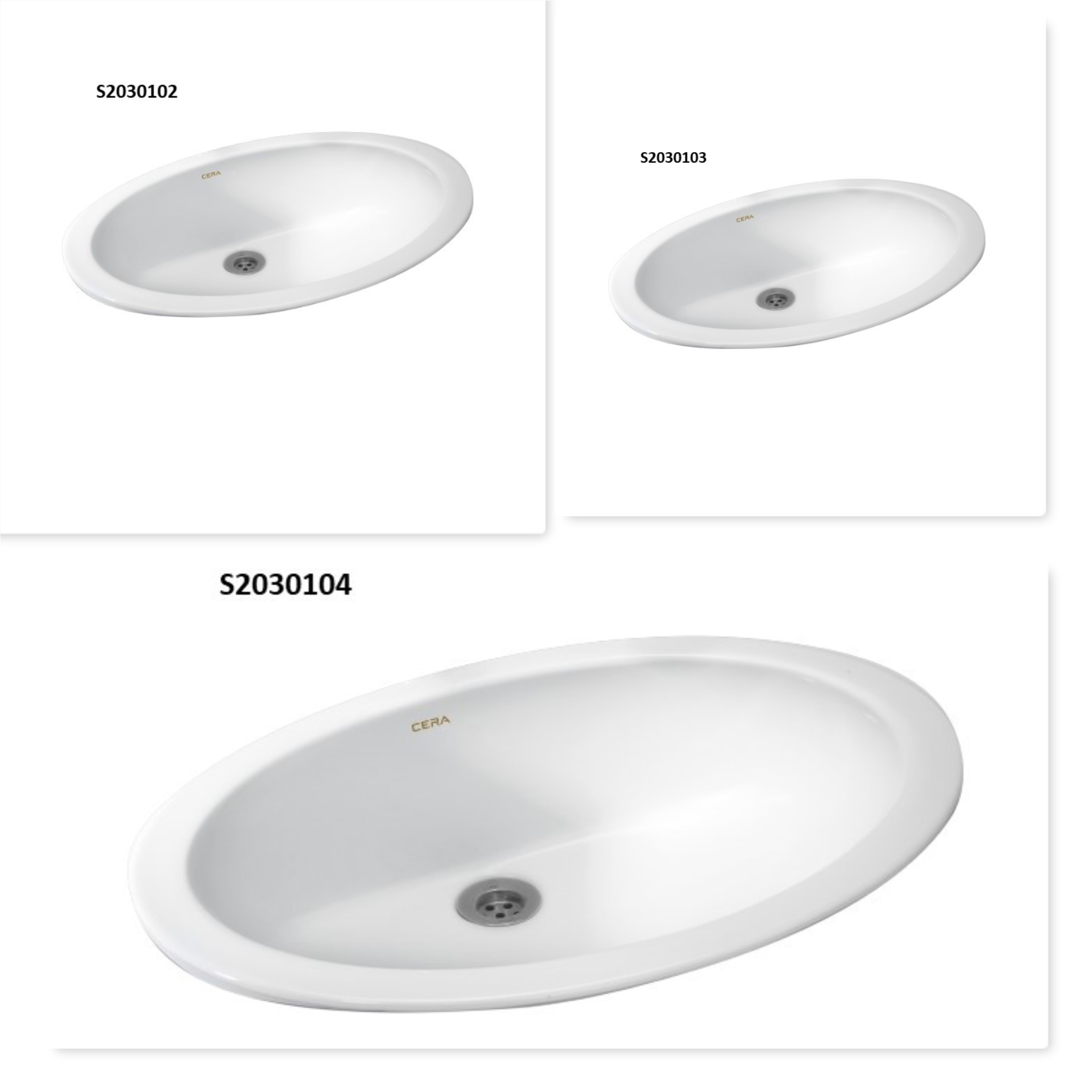 Under Counter with Self Rim Wash Basin | S2030104 | S2030103 | S2030102 | Size: S2030104-560 x 470 x 190 mm | S2030103-560 x 400 x 205 mm | S2030102-450 x 350 x 150 mm
