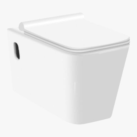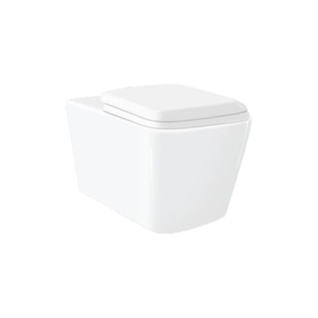 Wall Hung Toilet Seat (Set) in White | KS102 | Size : 534x365x360 mm, P-Trap : 215 mm , PP Soft Close Seat Cover : KB056
