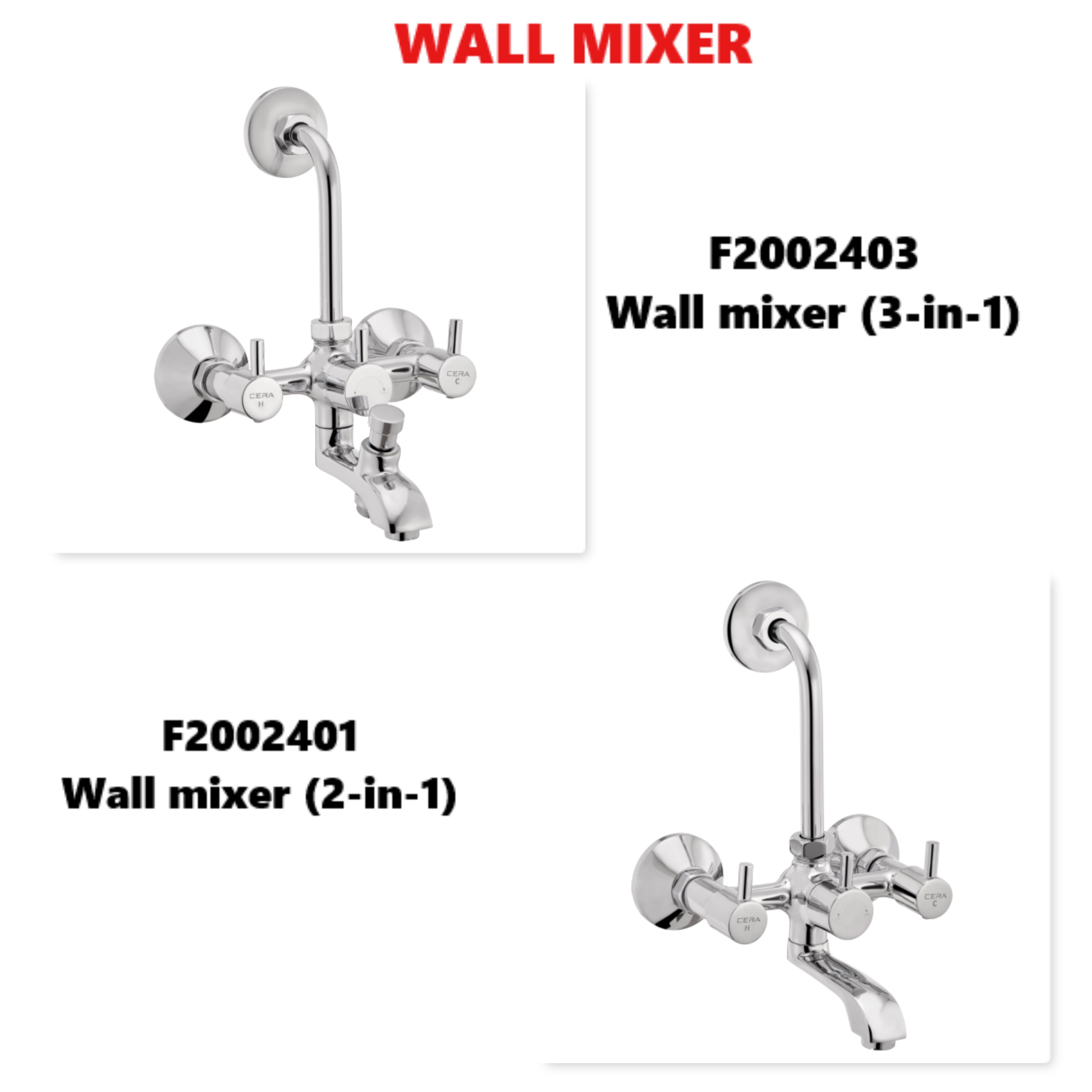 Victor | 3 in 1 F1015403 | 2 in 1 F1015401 | Quarter Turn Wall mixer Hot & Cold with bend pipe for overhead shower