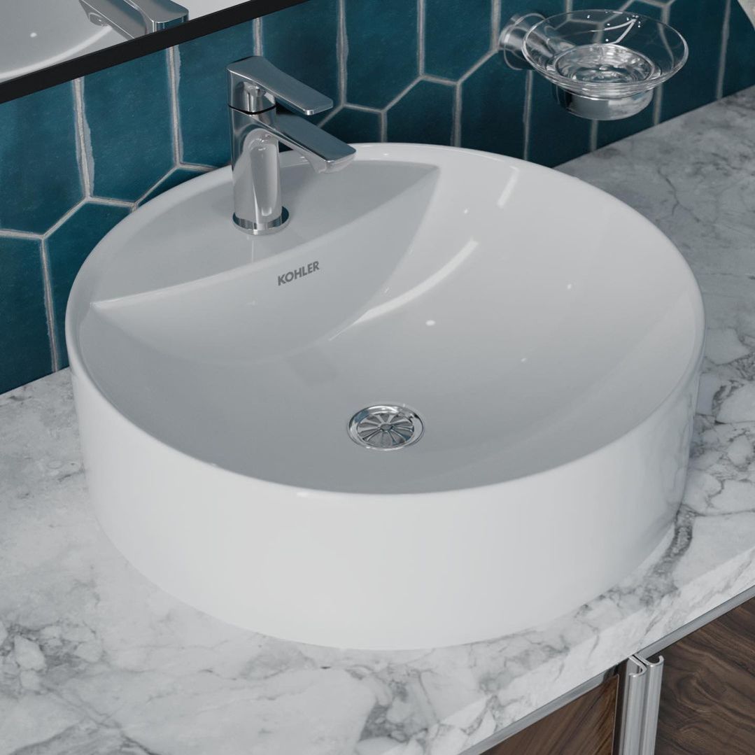 Countertop Vessel Basin with Single Faucet Hole in white | K-29024IN-1-0 | 470mm