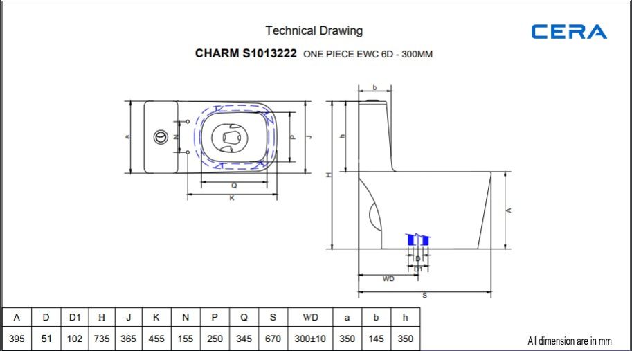Rimless Siphonic Jet Flushing One Piece WC | S1013222 | Size: 670 x 365 x 735 mm