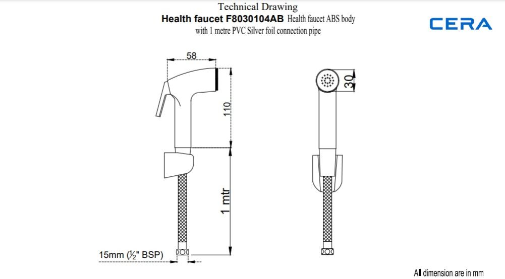 Health Faucet | ABS body with 1 meter PVC Silver foil connection pipe | F8030104AB