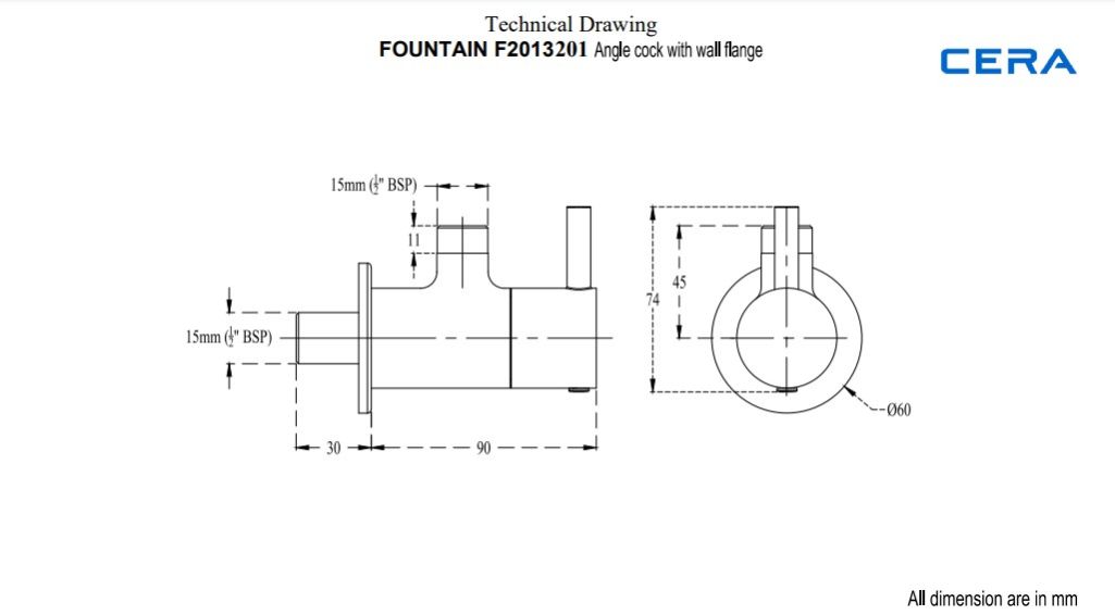 Faucet Type: Fountain Quarter Turn Angle cock with wall flange