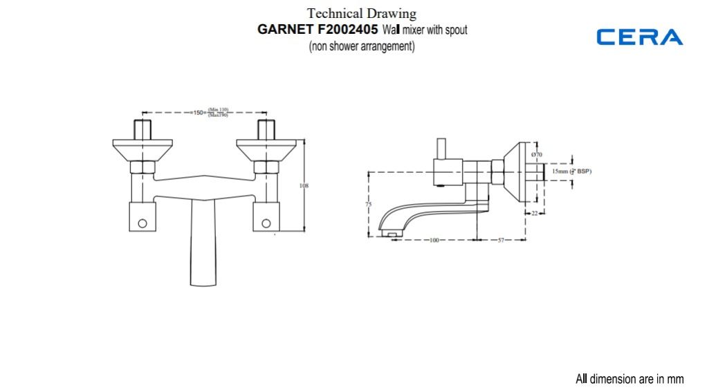 Faucet Type: Garnet Quarter Turn Wall mixer Hot & Cold with spout (non shower arrangement)