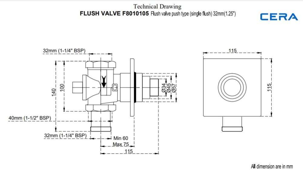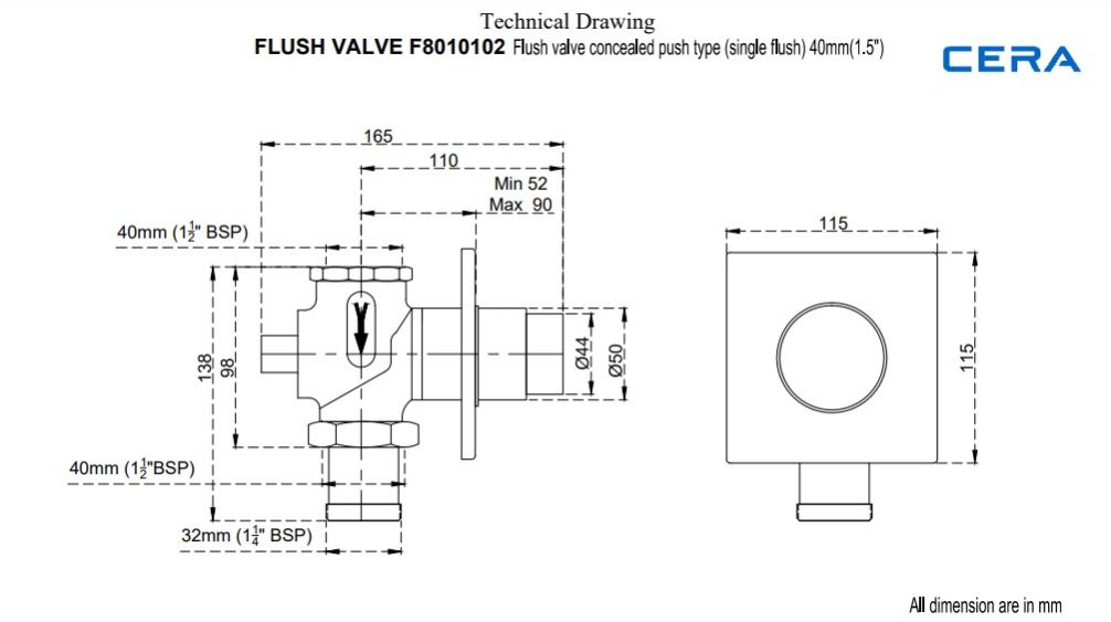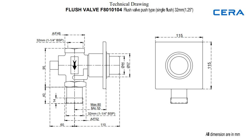 Concealed push type Square Shape Single Flush, Dual Flush | F8010102-40 mm | F8010104-32 mm | F8010202-40 mm | F8010105-32 mm