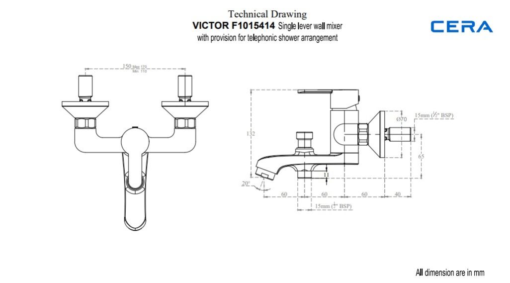 Faucet Type: Victor Single lever wall mixer Hot & Cold with provision for telephonic hand shower