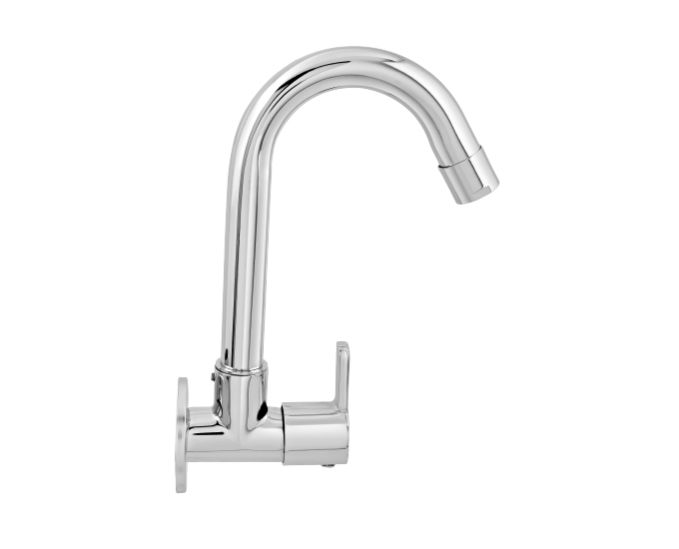 Quarter Turn Wall mounted Sink cock with long swivel spout and wall flange | F1015251
