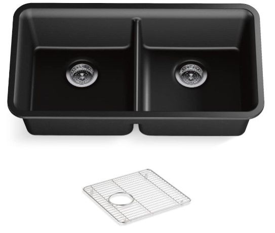 Product: 851mm undermount double-bowl kitchen sinkrnin matte black