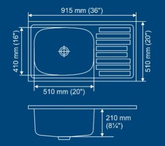 Nirali NG Kitchen Sink | Overall Size: 36" X 20" inches / 915 X 510 mm