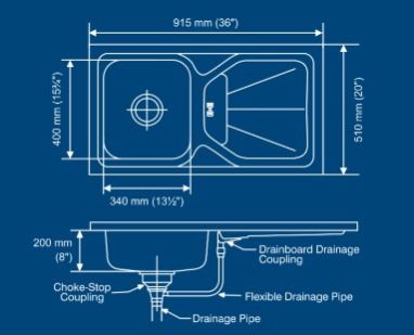 Nirali NG Kitchen Sink | Overall Size: 36" X 20" inches / 915 X 510 mm