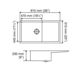 Overall Sink Size : 36" X 20" inches/ 915mm X 510mm