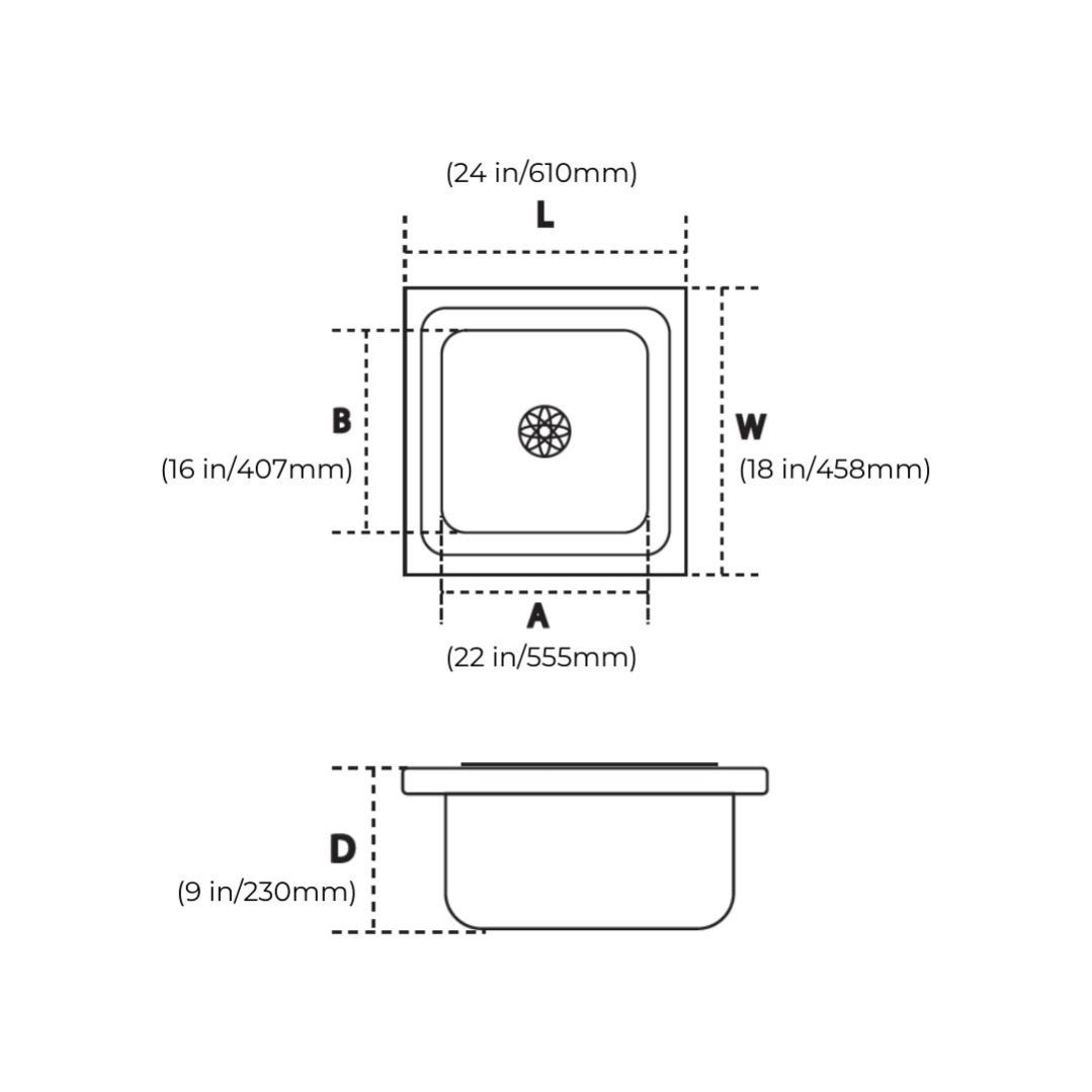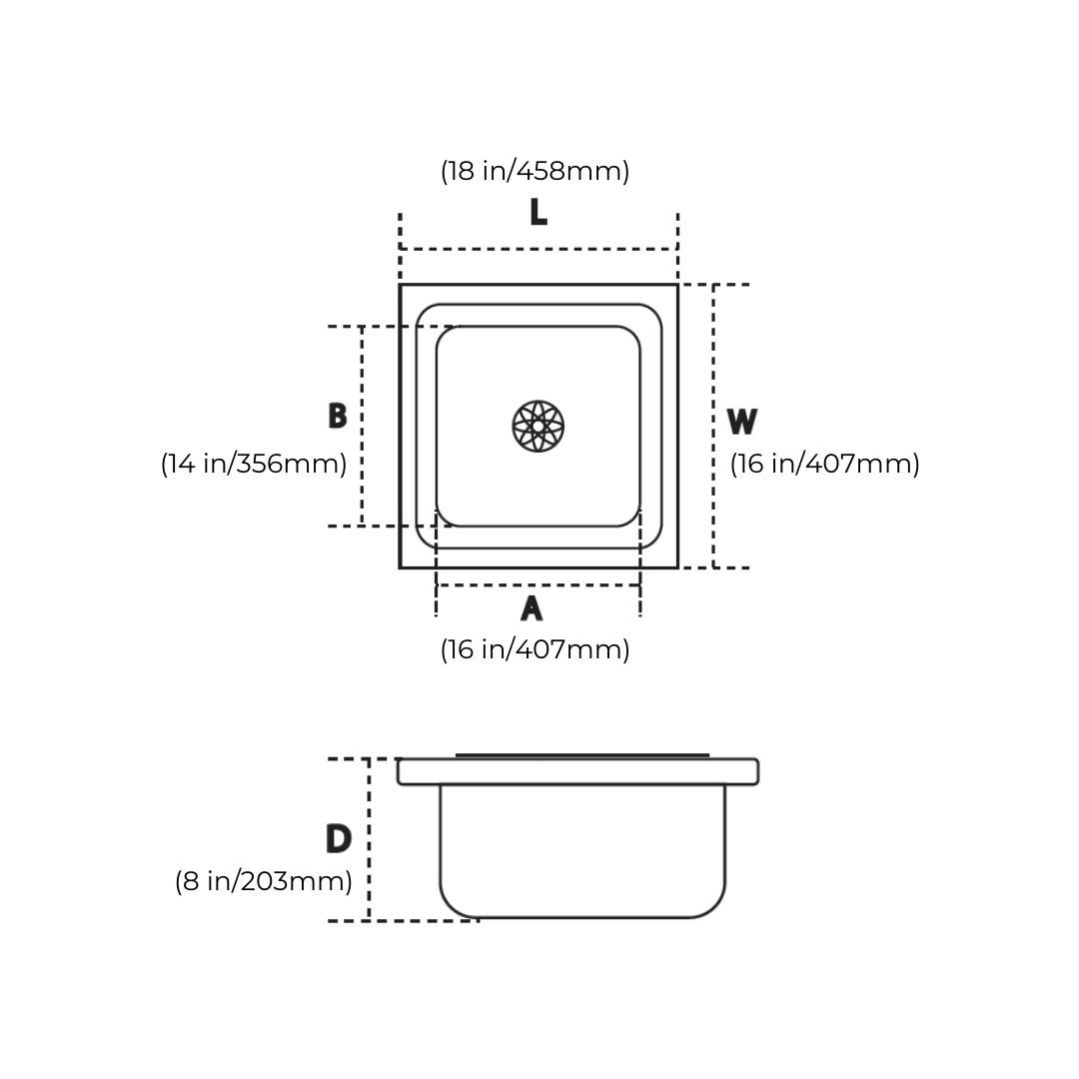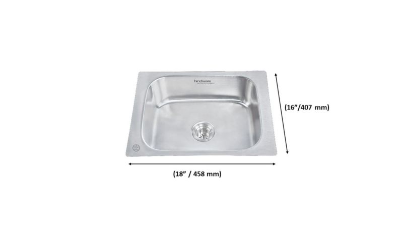 Pressed Kitchen Sink | Matte , Glossy Finish | Overall Size : 458 X 407 X 203 mm(18" x 16") , 610 X 458 X 203 mm(24" x 18")