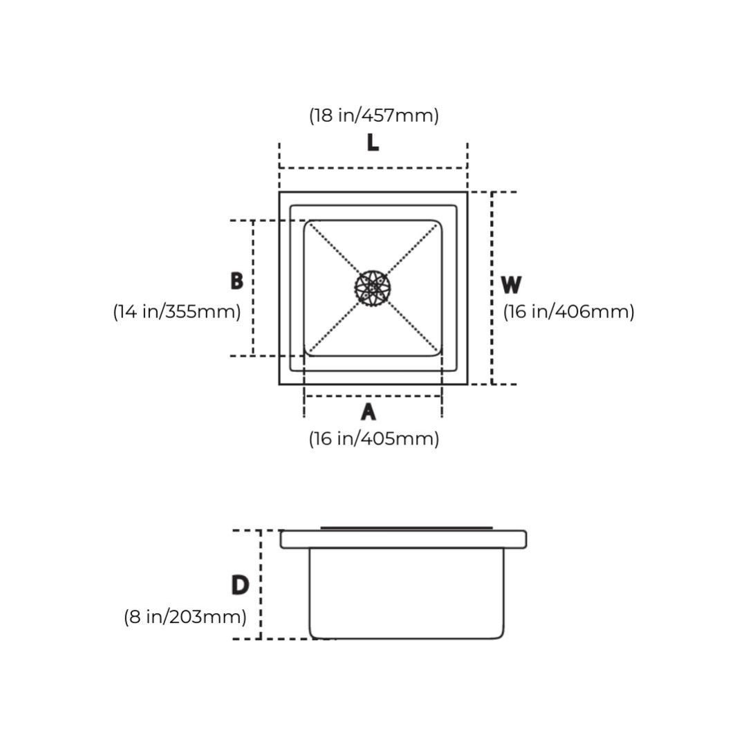 Sink Size: 18 X 16 X 8 (Overall Size : 457 X 406 X 203 mm)
