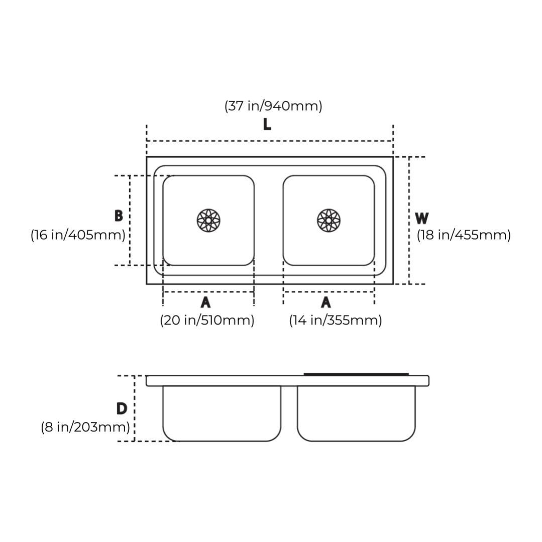 Sink Size: 37 X 18 X 8 (Overall Size : 940 X 455 X 203 mm)