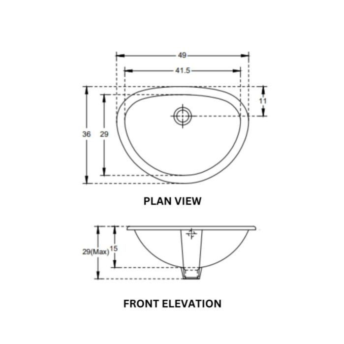 Self Rimming Counter Top Wash Basin | 10051 | Size: 49 x 36 cm