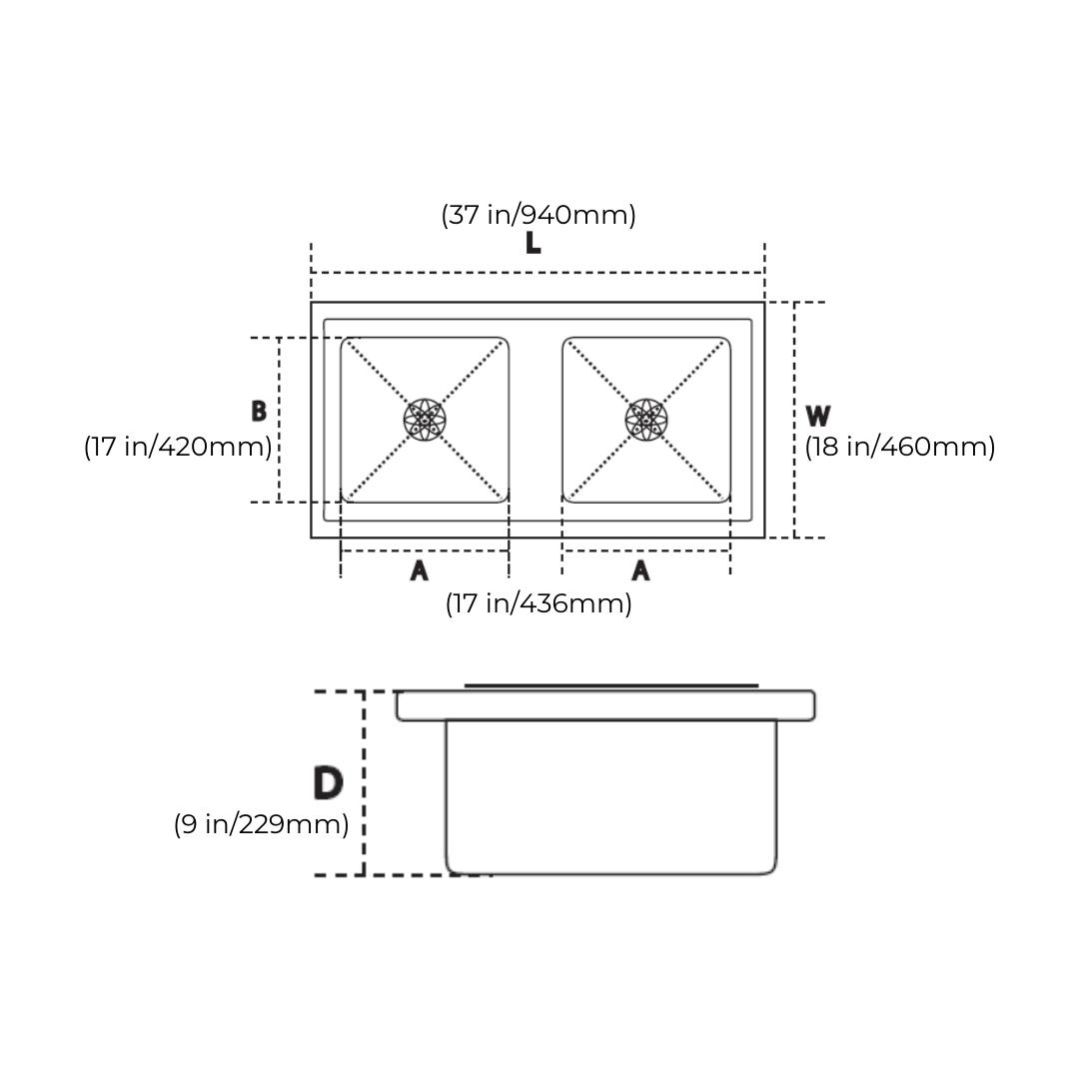 Sink Size: 37 X 18 X 9 (Overall Size : 940 X 460 X 228 mm)