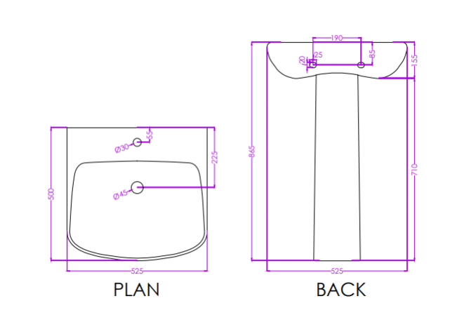 Full Pedestal Basin | P0715PW0203 (Basin), P0718PW0003 (Pedestal) | Dimensions : 520x440x850mm