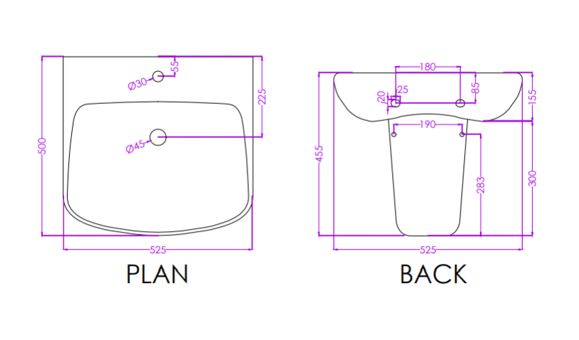Half Pedestal Basin | P0715PW0203 (Basin), P0718PW0002 (Half Ped) | Dimensions : 520x480x490mm