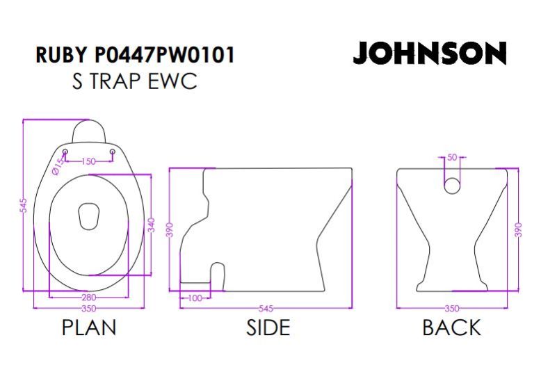 Floor standing EWC | P0447PW0101 (S Trap) | Dimensions : 360x540x400mm