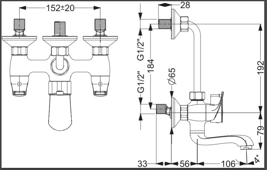 KEROVIT EDGE 2 IN 1 WALL MIXER