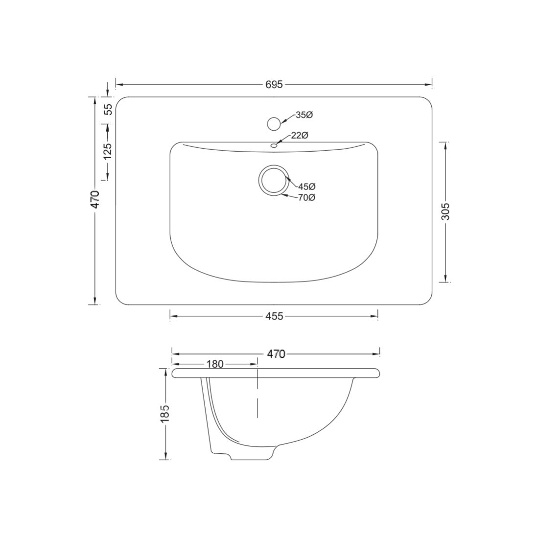 Over Counter Wash Basin | KS216 | Size : 690x465x175 mm