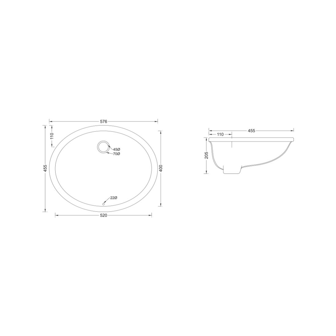 Under Counter Wash Basin in white | KS206 | Size : 576x455x205 mm