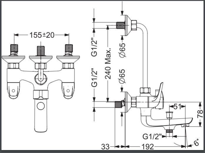 KEROVIT SLOPE 3 IN 1 WALL MIXER