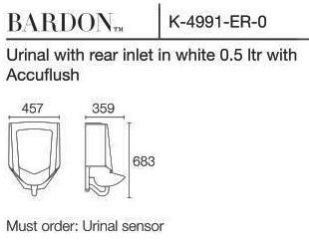 Urinal with rear inlet 0.5L with accu-flush | K-4991-ER-0 | Size: 457mm x 360mm x 715mm