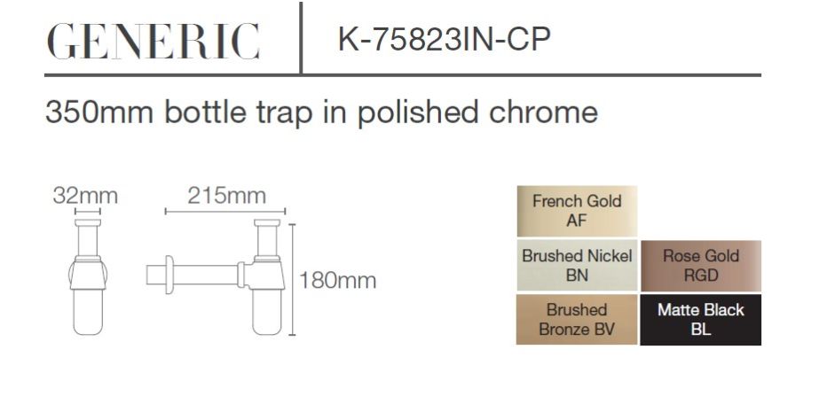 KOHLER COMPLEMENTARY BOTTLE TRAP