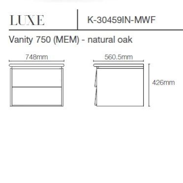 KOHLER LUXE VANITY 750(PU) BASIN