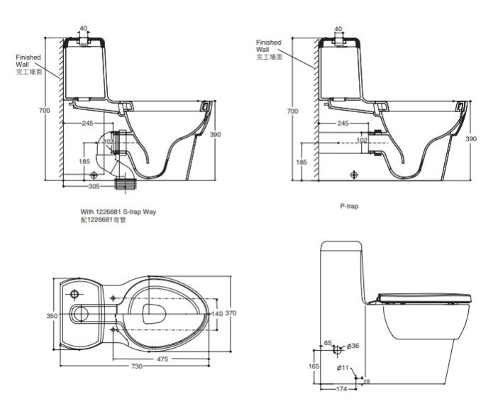 One-Piece toilet | K-17629IN-SM-0 | P-Trap, 185mm S-Trap, 305mm