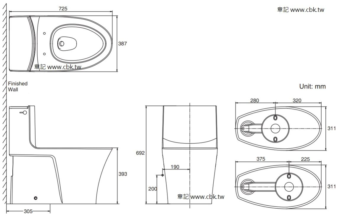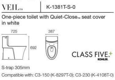 One-Piece Commode | K-1381T-S-0 | Trap: S-Trap | Trap Size : 305mm / 30.5cm / 12"