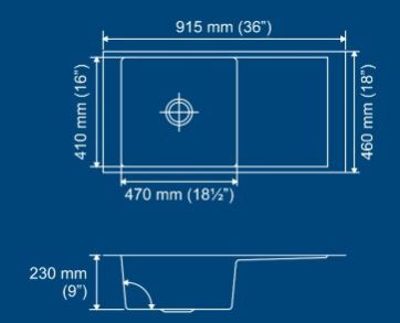 Overall Sink Size : 36" X 18" inches / 915 X 460 mm