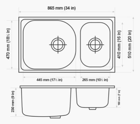 Nirali NG Kitchen Sink | Overall Size: 34" X 20" inches / 865 X 510 mm