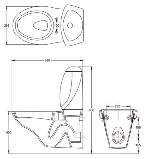 Wall Mounted Extended Commode | C022W | Size: 680 x 365 x 780 mm