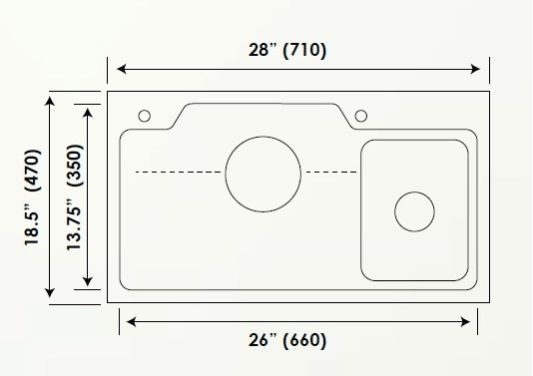 Overall Sink Size : 28 x 18.5 x 8.25 inches / 710 x 470 x 210 mm