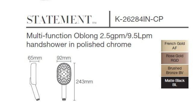 Must order: Hand shower bracket K-9040IN-CP, flexible hose K-12067IN-CP in matte black