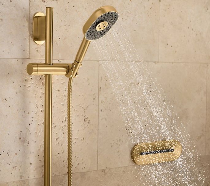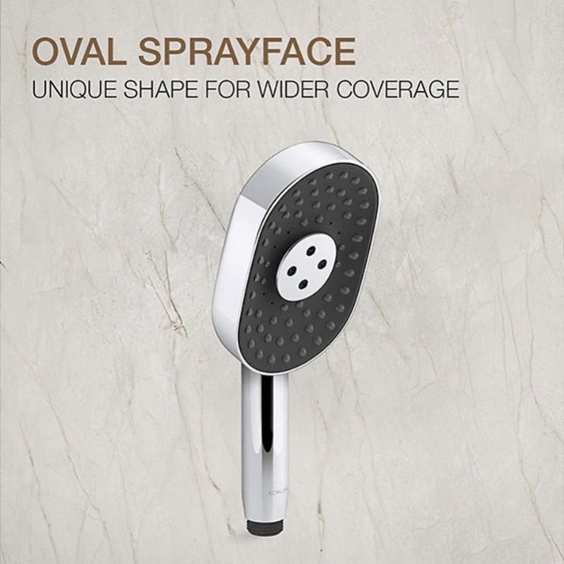 Multifunction handshower with advanced spray engine provides three spray experiences: Full Coverage with Katalyst technology, Deep Massage, and Cloud.